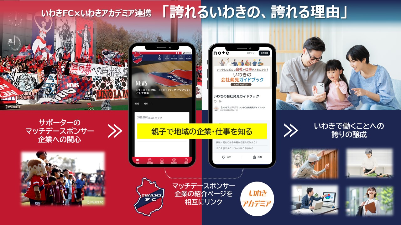 いわきアカデミアは、地域の象徴であるいわきFCと共に、若者がいわきで働くことに誇りを持てる環境づくりに取り組んでまいります。